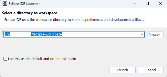eclipse.exe 파일을 클릭하여 eclipse를 실행한다.