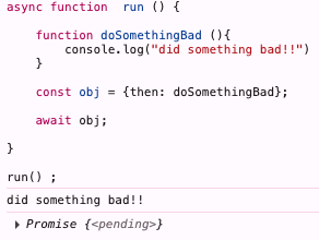 const obj = {then: doSomethingBad};