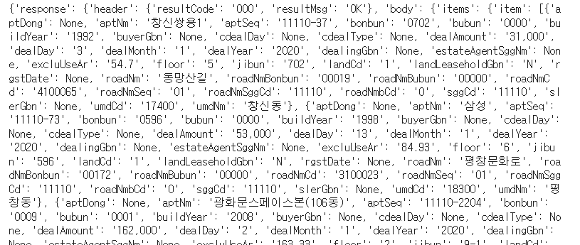 temp = getRTMSDataSvcAptTradeDev(pageNo,numOfRows,LAWD_CD,DEAL_YMD,serviceKey)