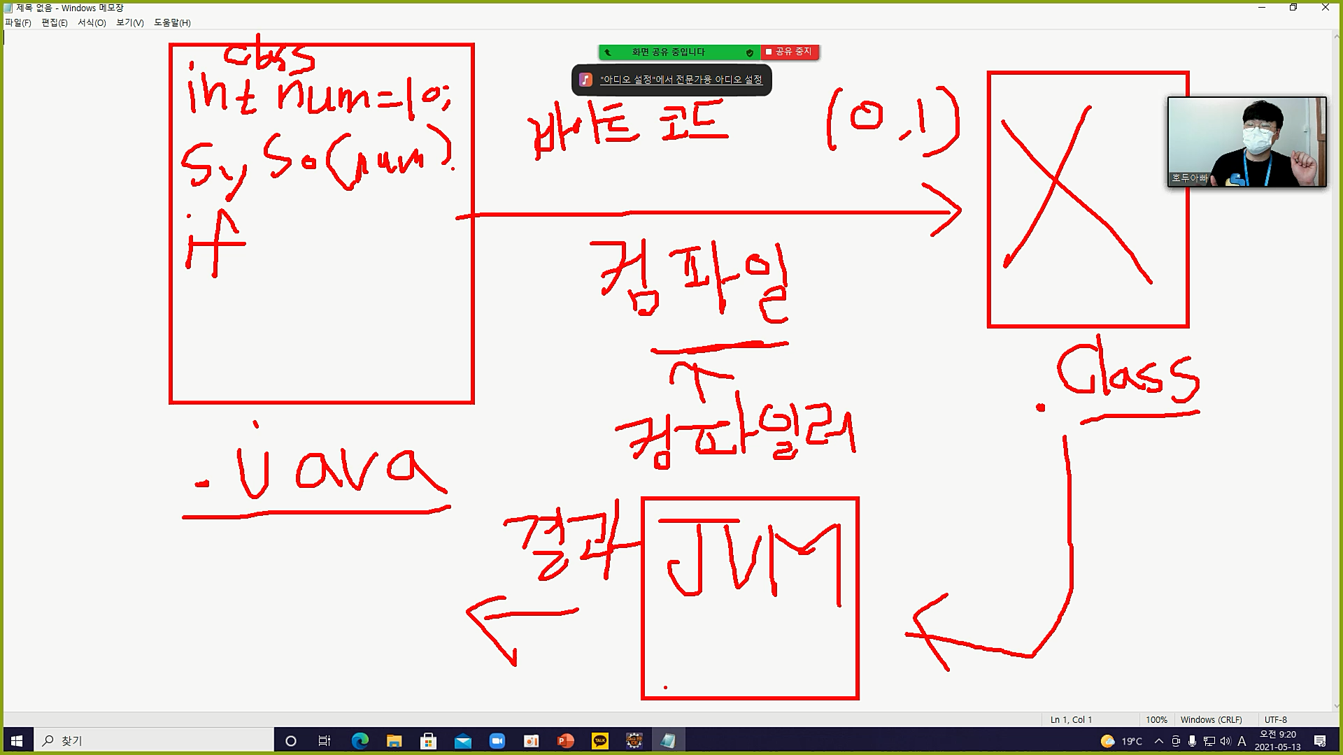 - 컴파일 시키면 .java에서 .class파일이 돼. 이건 사람이 이해할 수 없어