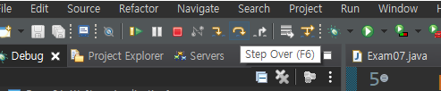 단축키 f6 쓰면 한 줄 한 줄 실행 돼