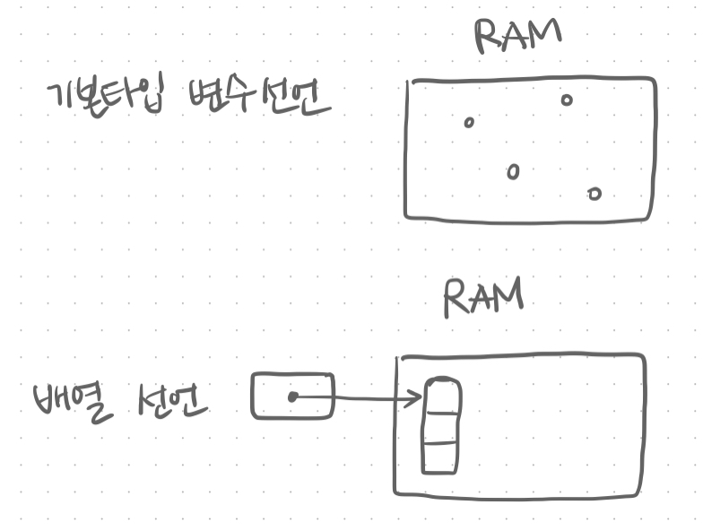 - array 안에는 값이 직접 들어가는 게 아니라, 주소를 가지고 있어 = 주소를 참조하고 있어