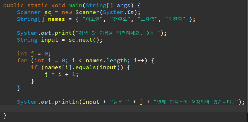 - 오답2 : 이렇게 짜면 문자열 배열에 안 들어있는 이름에 대해서도 0번째 인덱스에 저장되어 있다고 출력될 거야