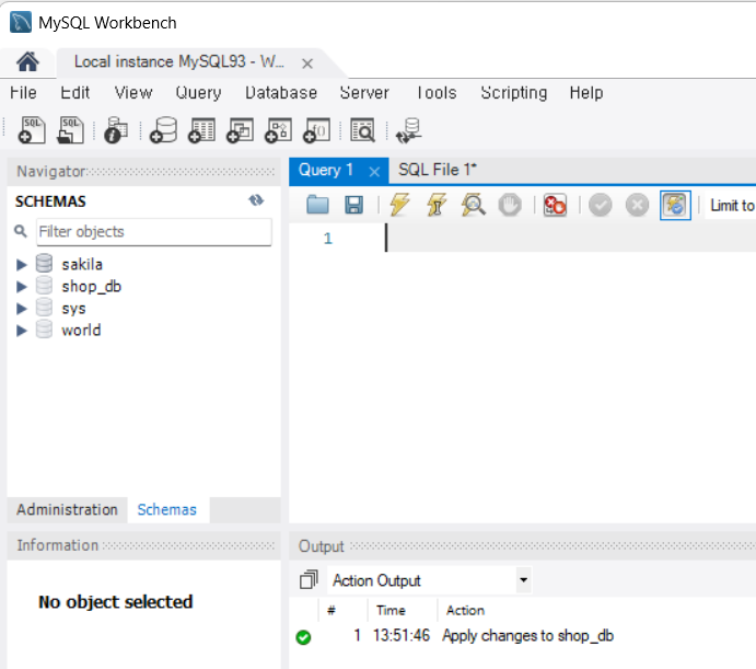 작업할 데이터베이스를 선택하기 위해 스키마 패널의 'shop_db'를 더블 클릭한다.