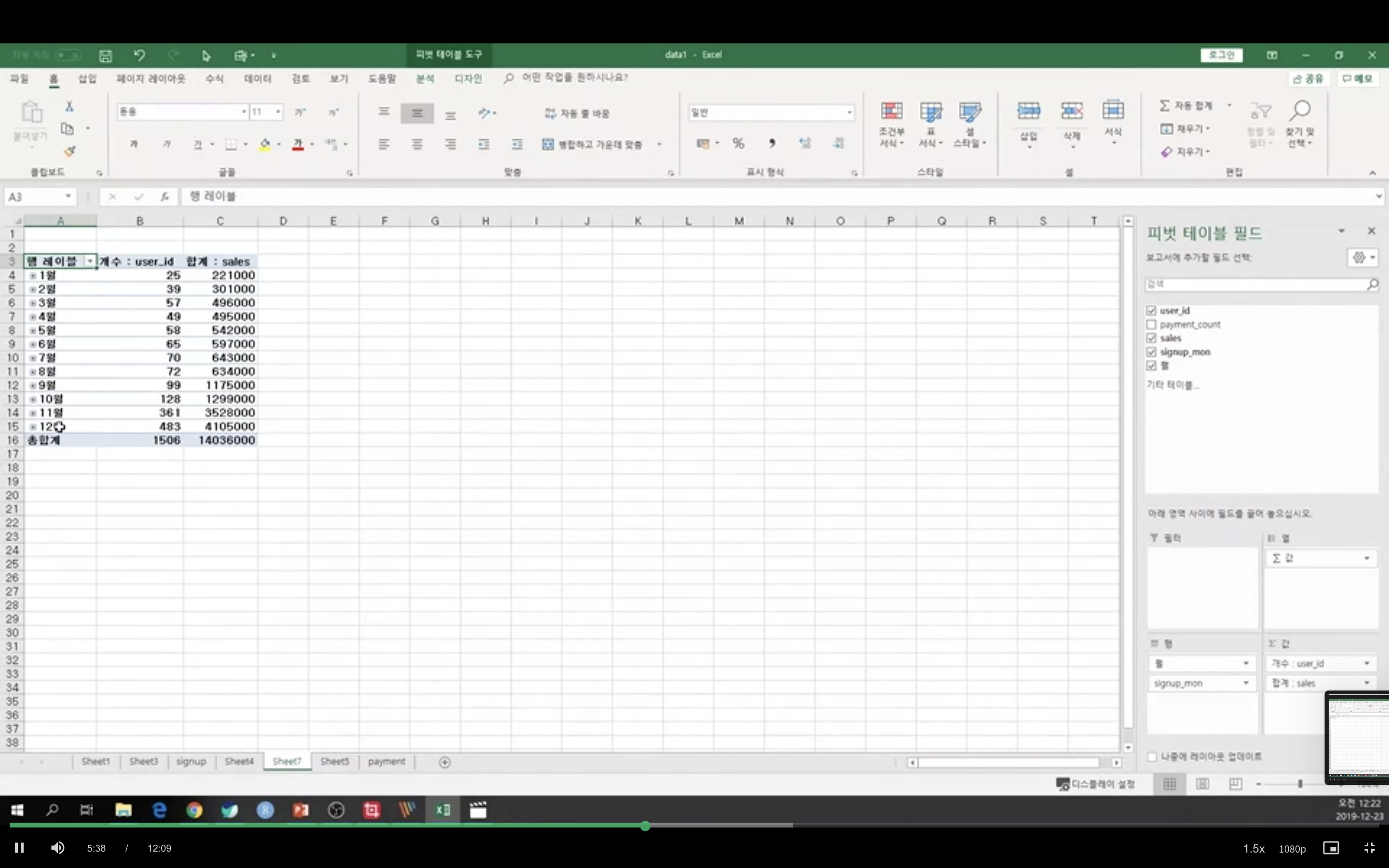 가입자 : retention 계산을 위해 만들었던 걸로 달마다 가입자수 알 수 있음