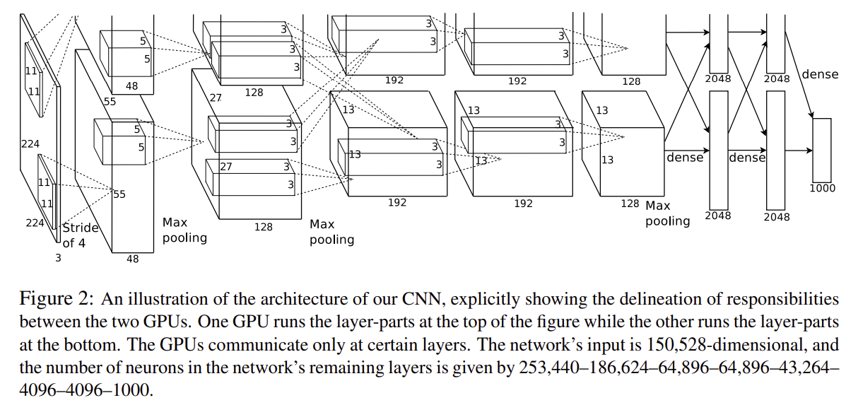 (layers을 총리하면서 주의할점은 논문에서는 2 GPU 분산을 사용해서 총 kernels 수의 0.5배로 서술하였다. 그런데 자세히 보면 서술 오류로 총 kernels을 서술하기도 하였다.)