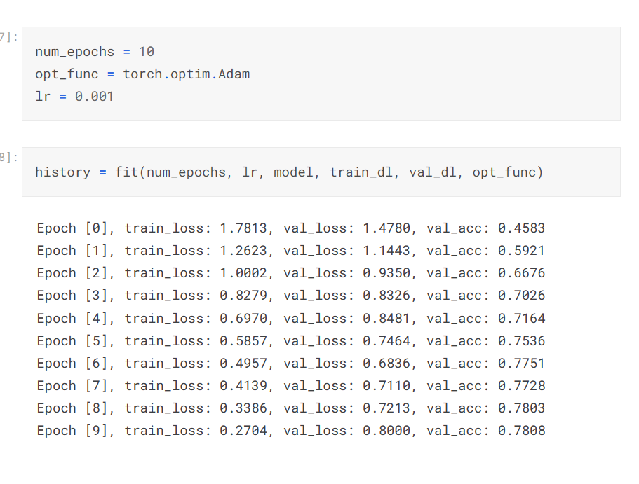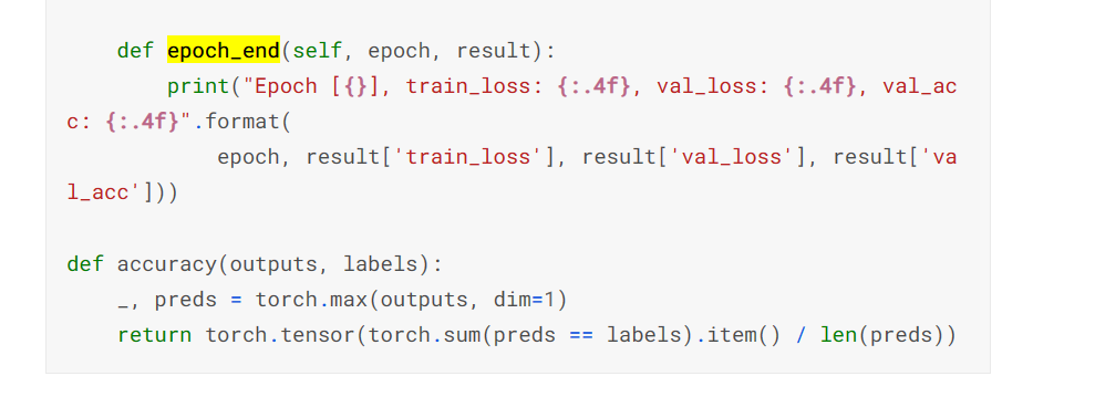 print 로 현재의 epoch / train_loss / val_loss / val_acc 를 보여준다.