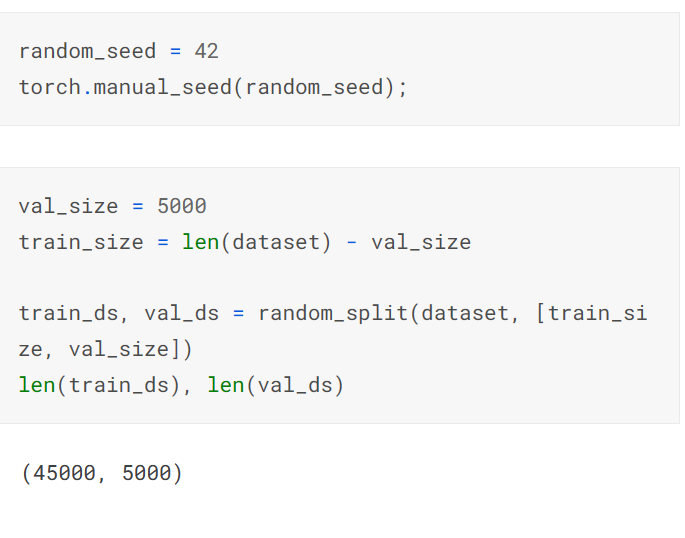 우리는 random _ split helper 메소드를 이용해서 같은 validation set 를 만든다. random number generator 를 위해 seed를 셋팅한다.