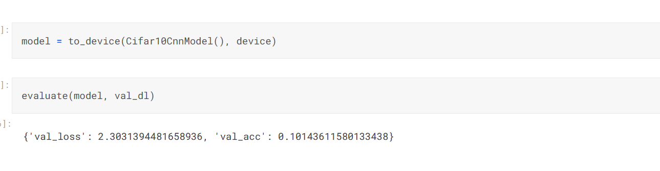교육을 시작하기 전에 모델을 다시 한 번 인스턴스화하고 초기 매개 변수 집합을 사용하여 검증 세트에서 어떻게 작동하는지 알아보겠습니다.