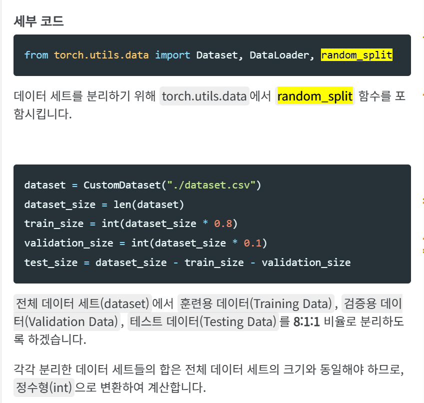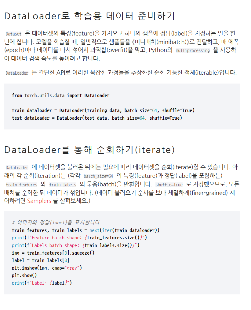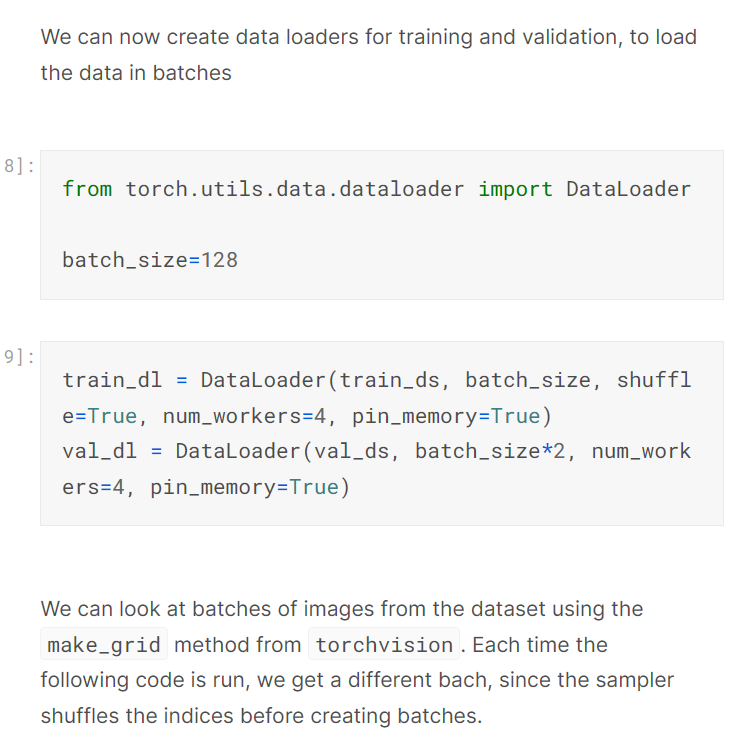 우리는 이제 training / validation 을 위한 데이터 로더를 만들수 있다.