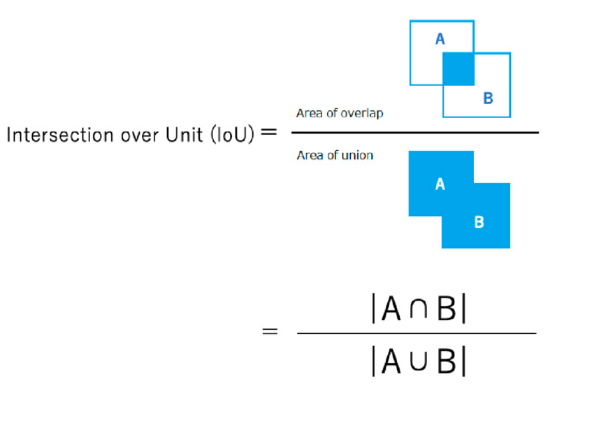 - Intersection over Union(IoU) is used as a metric to evaluate the overlap between bounding boxes.
