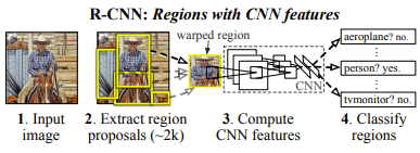Girshick, R., Donahue, J., Darrell, T., & Malik, J. (2014). Rich feature hierarchies for accurate object detection and semantic segmentation. 2014 IEEE Conference on Computer Vision and Pattern Recognition, 580–587. https://doi.org/10.1109/cvpr.2014.81