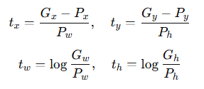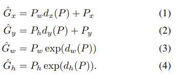P = (x, y, w, h), G = (Gx, Gy, Gw, Gh)