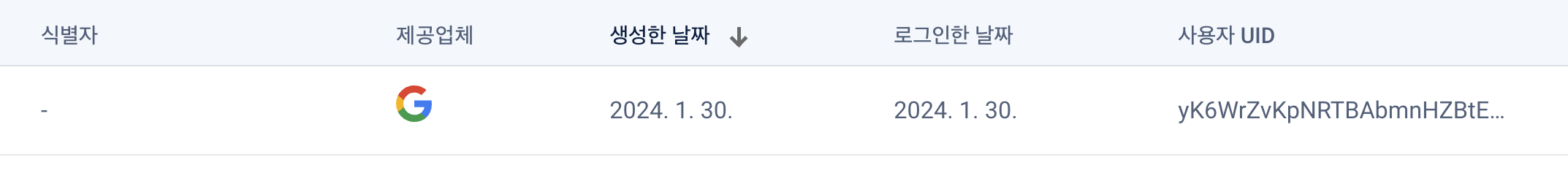 ID 공급업체별로 여러 계정만들기를 선택해보니, firebase Authentication에서 아래 이미지처럼 이메일이 들어가야할 식별자에 - 처리를 해버렸다.