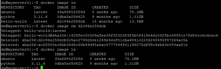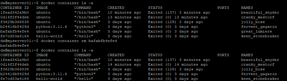 다수의 컨테이너를 한번에 삭제하고 싶다면, 컨테이너 ID를 연속으로 여러개 입력한다.