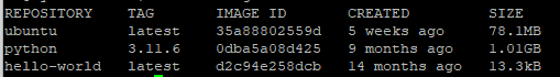 REPOSITORY는 이미지 이름을 의미하며 TAG는 이미지 태그를 의미한다.