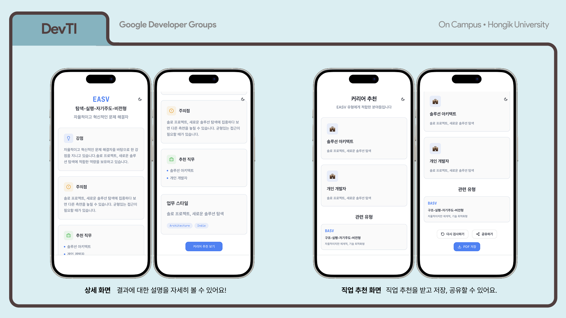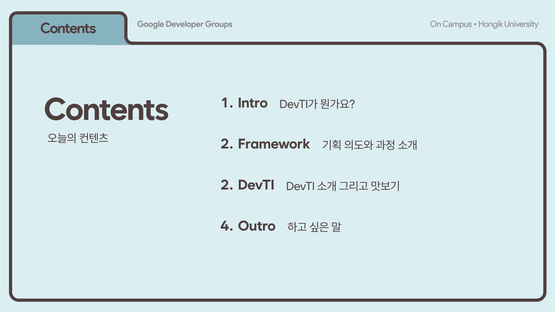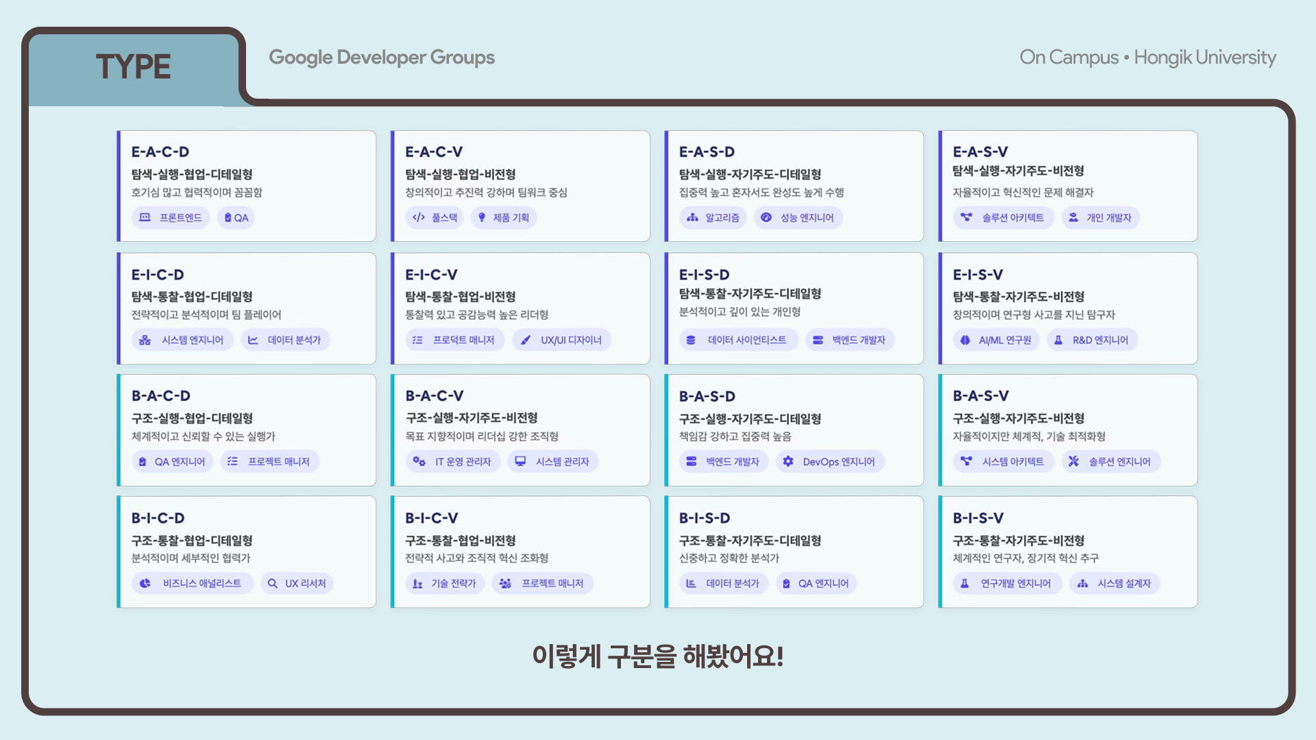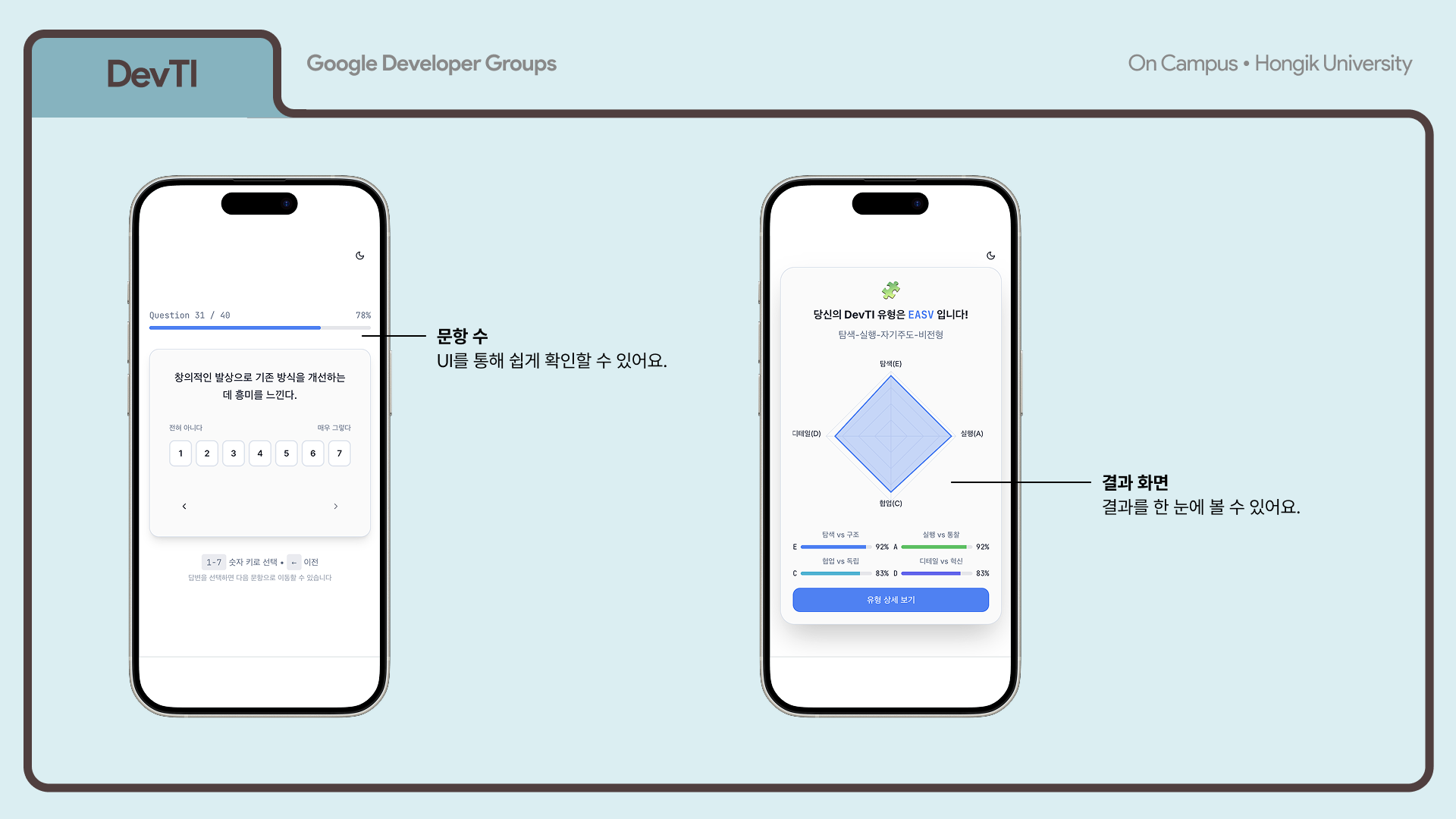 안녕하세요! GDG Hongik의 FE 파트로 세미나에서 발표했던 DevTI: IT’s Your Type에 대해 소개해보려고 합니다.
