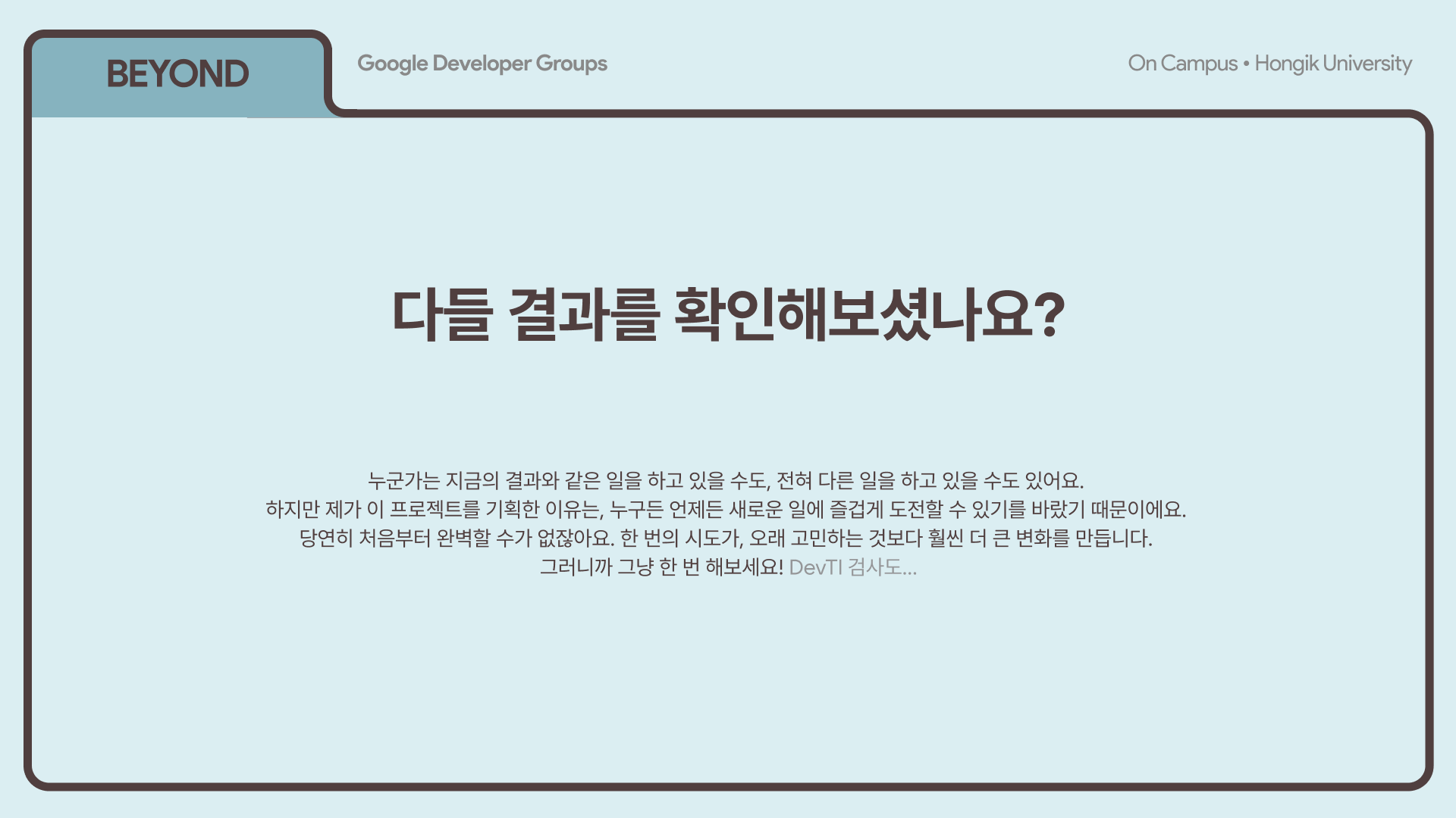 저는 GDG Hongik FE Park Member이자, DevRel 팀의 무언가를 맡고 있는 이든입니다.
