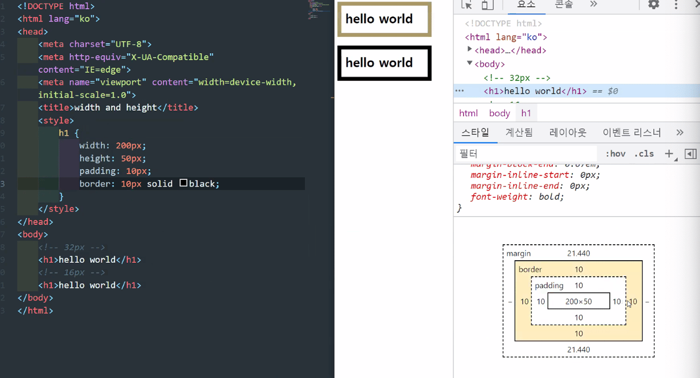 width와 height를 통해 content box의 크기를 조절할 수 있다.