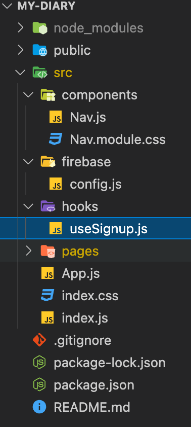 hooks 폴더 생성 > 만들고자하는 hook파일 생성 (useSignup.js)