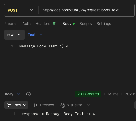 RequestEntity<>ResponseEntity<> @PostMapping("/v4/request-body-text")