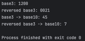 System.out.println("reversed base3 -> base10: " + Integer.parseInt(printReverseBase3(45), 3));