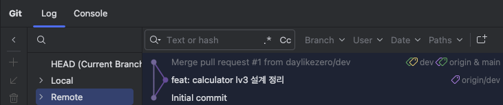 ์ดํ ์ ๊ท ๋ธ๋์น 'dev'๋ฅผ ์์ฑํ์ฌ ํ