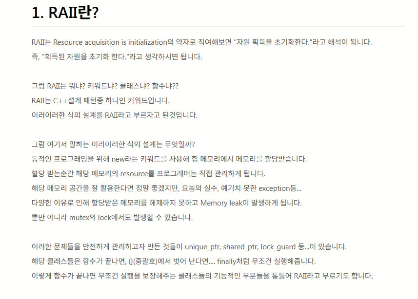 RAII 기반으로 만들어야한다. 도데체 무슨말인가 싶어서 검색을 했다.