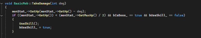 보스가 조건을 만족하면 스킬이 써지게 구현을 해준다.