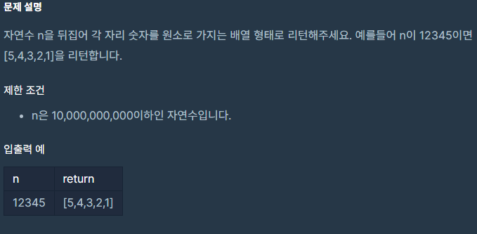 실제구현 : for문이 먼저 떠올라서 for문의 사용을 생각해봤으나 숫자가 주어지기전까지 자릿수의 갯수를 알 수 없으므로 while문을 써야한다는 것이 생각났다. for문 사용의 주의