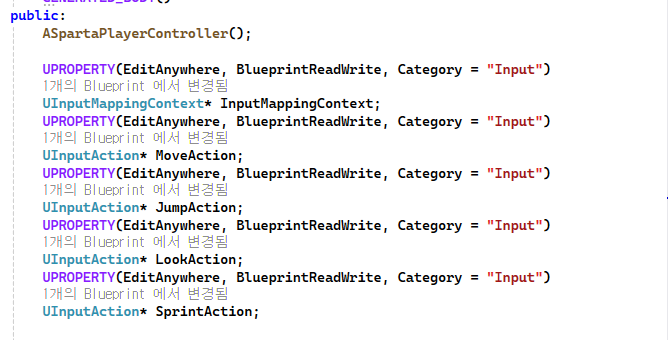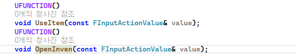 FInputActionValue 라는 구조체가 필요한데 사용하기위해 클래스 앞에 전방선언을 해주었고 구조체 같은경우는 데이터가 굉장히 크기때문에 &연산자를 사용에 참조해주었으며 구조체 값이 변경되면 안되기때문에 const 처리를 해주었다.