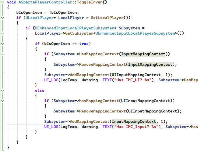 변수를 만들고 생각을 해보니 IMC가 교체가 되려면 특정키를 눌러서 동작하게 만들어야한다는 생각이들었다. ex) I키를 누르면 인벤토리가 켜졌다 꺼졌다 하는 것