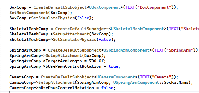 SpringArmComp->bUsePawnControlRotation : SpringArm은 Pawn의 회전을 따라감으로 true