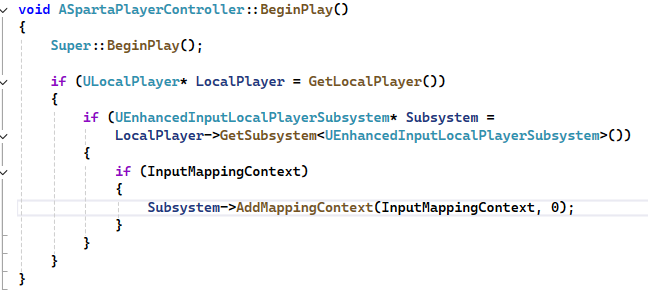 UEnhancedInputLocalPlayerSystem* : 등록된 LocalPlayer의 Subsystem 을 이용하기위해 가져온 후 유효성 검사