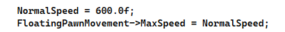 생성자에서 초기화 한 후 MovementComponent 에 이동속도를 담당하는곳에 값을 전달했다.