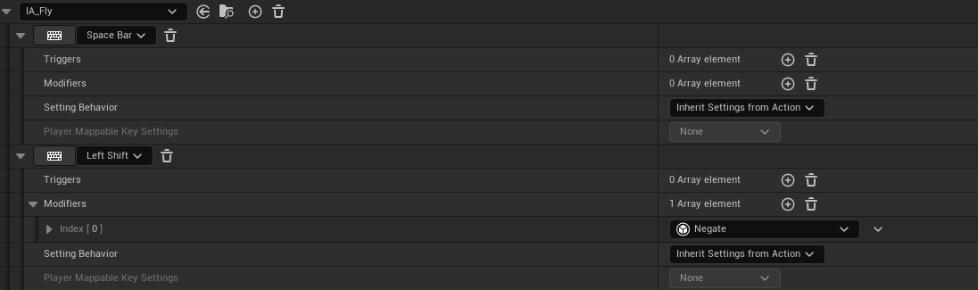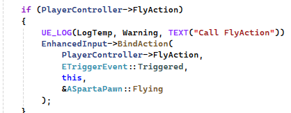 때문에 IA_Fly 를 구현할때도 마찬가지롤 축을 재배치하여 들어온 값이 Z축으로 전달되게끔 해주었는데 작동하지 않았다. 바인딩이 문제일 수 도 있어서 로그도 찍어보았고 컨트롤러 블루프린트에 이벤트를 직접호출해봤는데 결과, 바인딩은 문제가 없으나 콜백함수를 호출하는과정에서 함수가 호출이 되지 않았던것을 알 수 있었다. BindAction 함수의 경우 내부에서 이벤트호출을 Triggers 로 하고있었는데,