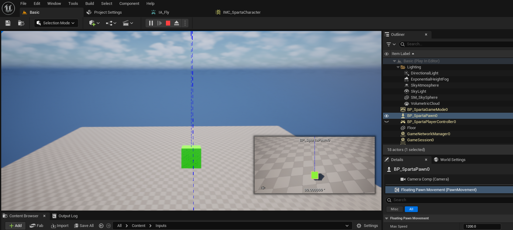 IMC Move 의 구현도이다 움직임을 처리하기위해 Modefiers 에서 축을 재배치 하는 처리를 해주고 있는것을 볼 수 있는데 때문에 IA fly를 구현할때에도 결국엔 Z축을 계산하는 것이고 입력값은 (v,0,0) 처럼 들어온다고 생각했다.