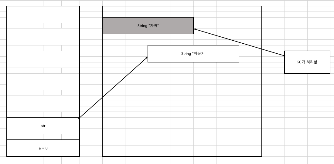 가비지는 언제 생길까? 왜 생길까? 내용은 간단하다. 우리가 new 연산자를 이용해 객체를 생성한다. 그러면 메모리에 올라간다. 그때 이 객체를 지속적으로 사용하지 않고, 참조도 하지 않으면 그건 가비지가 된다. 그렇게 사용하지 않는 메모리가 생기는게 가비지가 생기는 과정이다. 아래는 내가 직접 그려본 가비지가 생기는 과정이다.