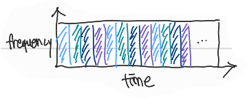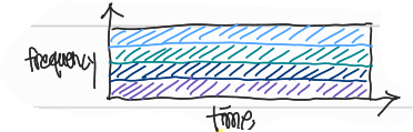 → circuit을 frequency 기준 4개의 circuit으로 쪼개서 사용자 한 명 당 all time 1/4의 대역폭을 사용