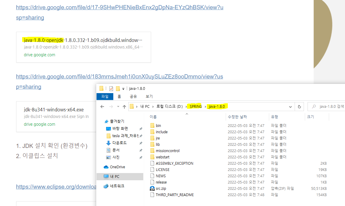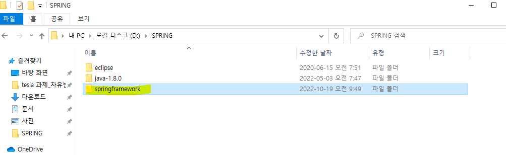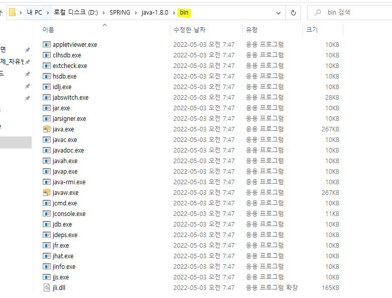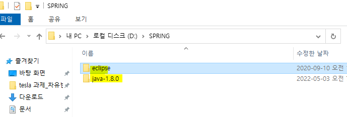 jdk1.8버전 다운로드 -> SPRING 폴더 만들고 안에 넣기 이름 너무 길면 변경하면 됨