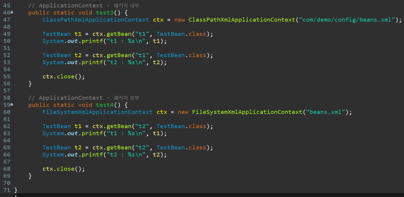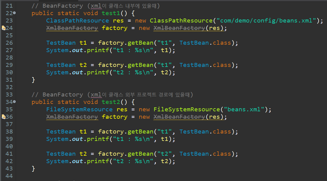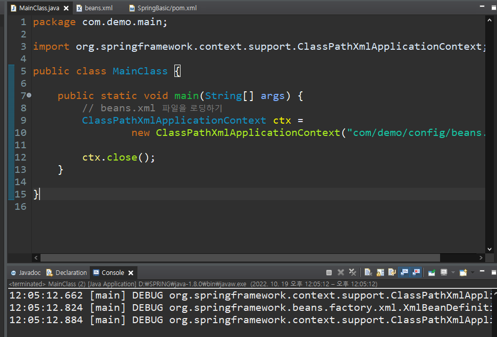 내부 : ClassPathResource res = new ClassPathResource("com/demo/config/beans.xml");