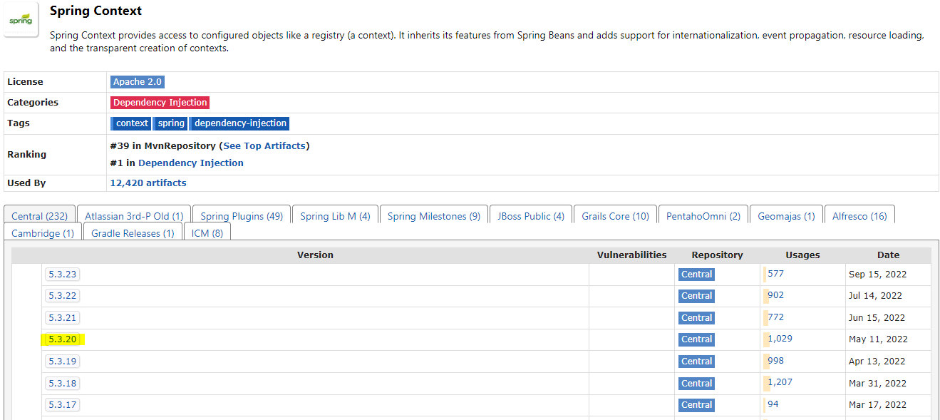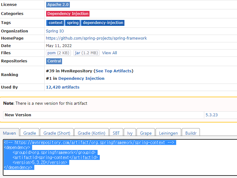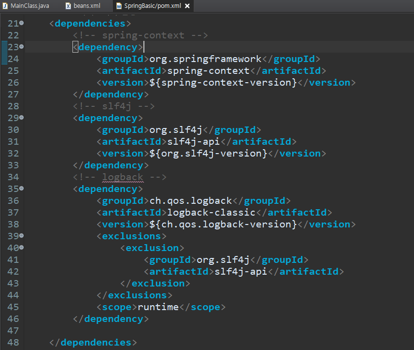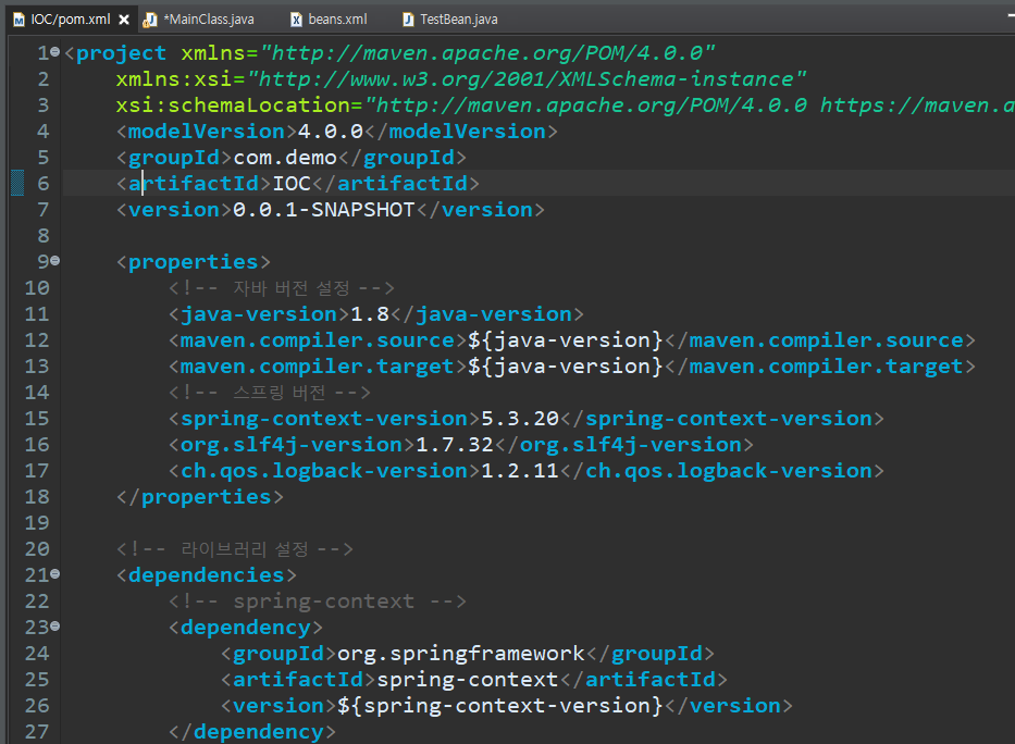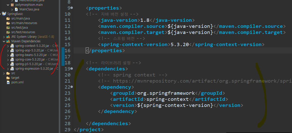 스프링 프레임 워크의 가장 기초 디펜던시들이 다운 받아짐
