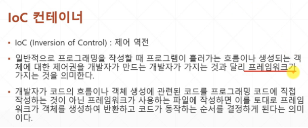 - IoC(제어 반전)이란, 객체의 생성, 생명주기의 관리까지 모든 객체에 대한 제어권이 바뀌었다는 것을 의미
