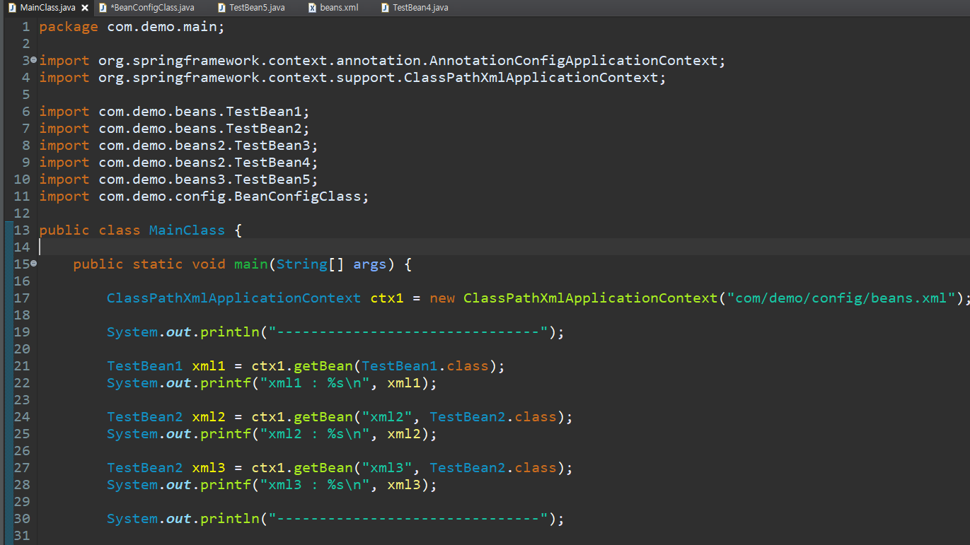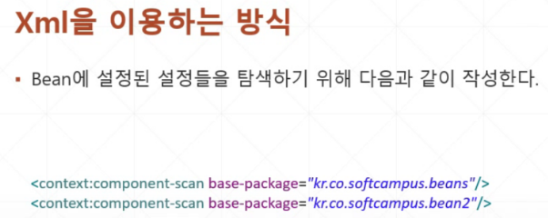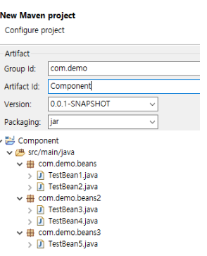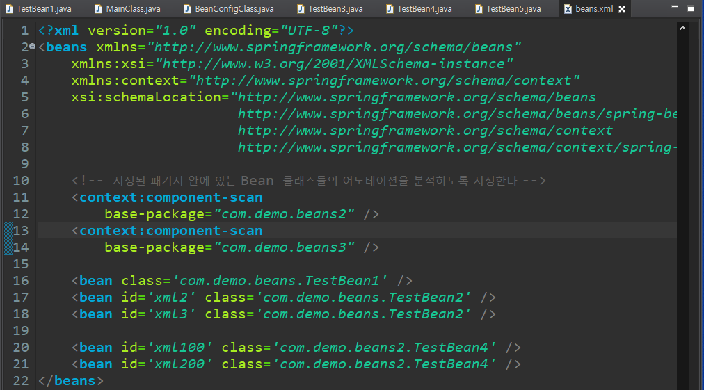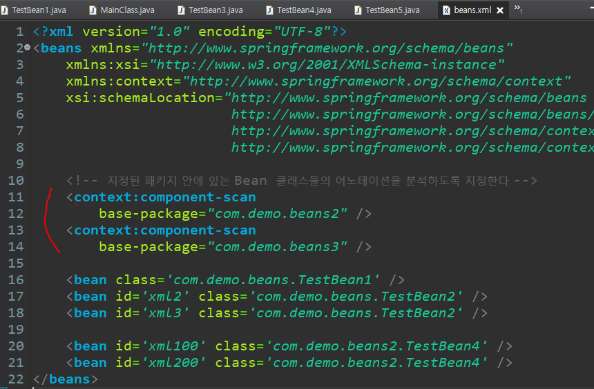 beans.xml 생성(component-scan으로 beans2, beans3에 component가 붙어있는 클래스를 불러옴)