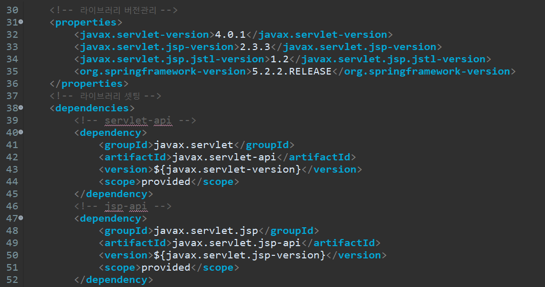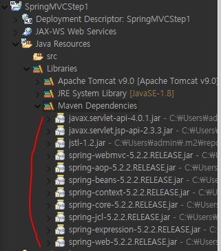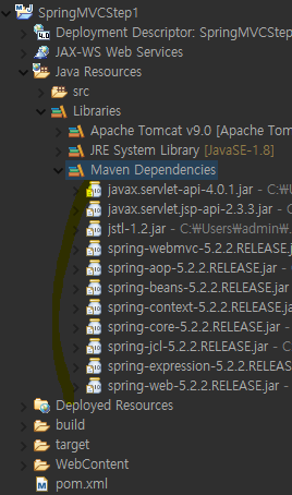 서블릿, JSP, JSTL, 스프링-MVC 등이 라이브러리에 추가됨