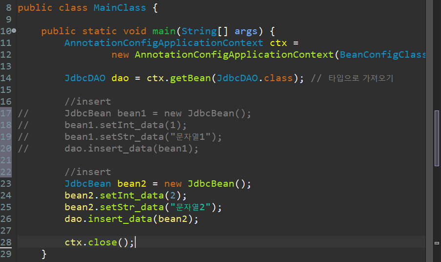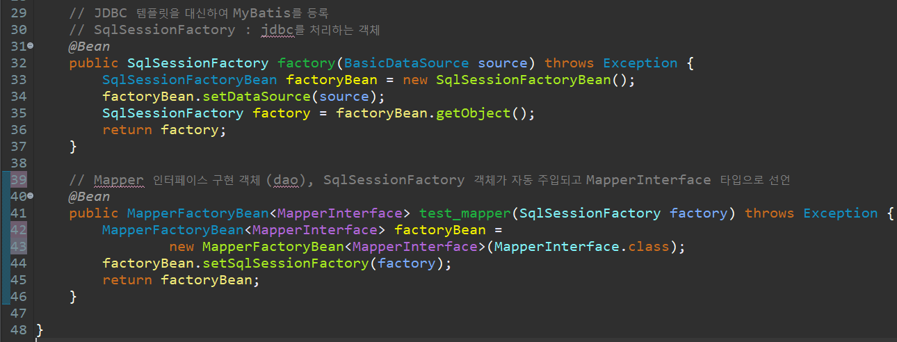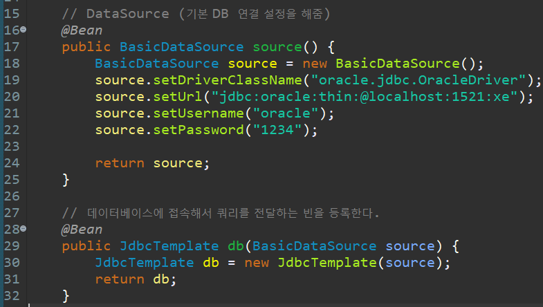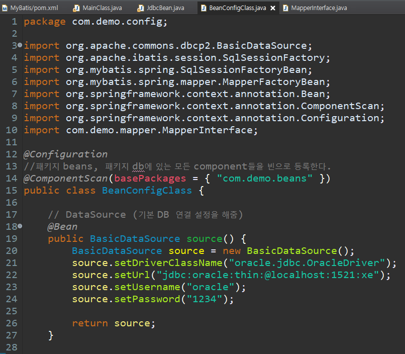 BeanConfigClass.java에 DataSource, Bean 코드 추가