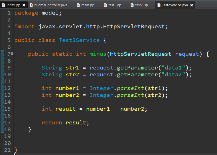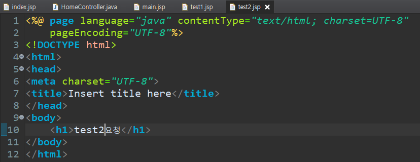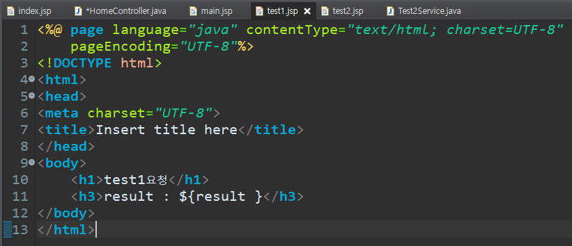 test1.jsp 페이지에서 결과 출력(test2.jsp 동일)