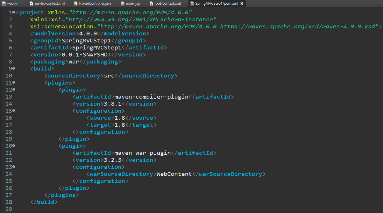 SpringMVCStep1 프로젝트 생성 후 메이븐 프로젝트로 변환