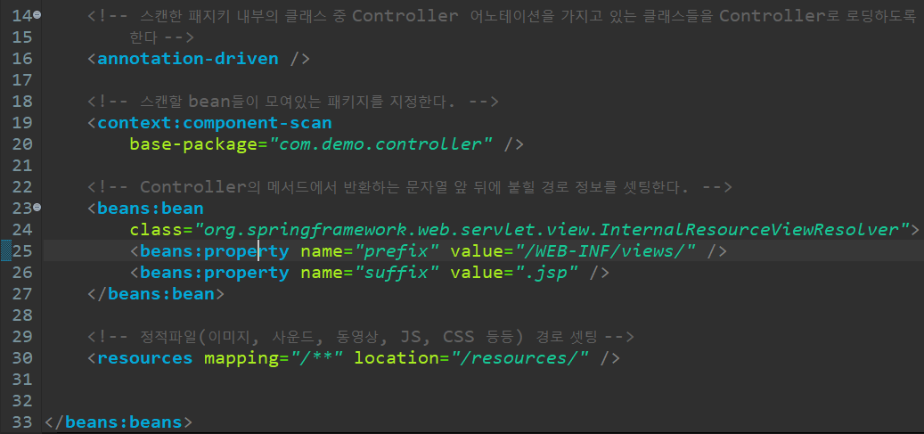 일반적인 자바 객체 즉, Service, Repository(DAO), DB등 비즈니스 로직과 관련된 설정을 해줍니다.