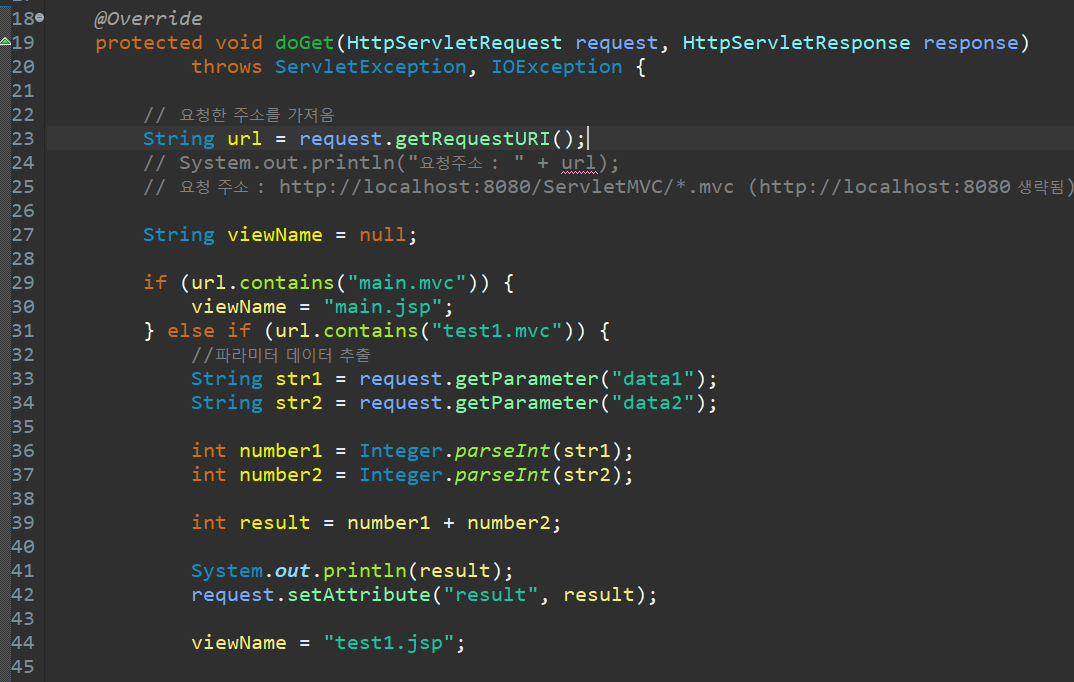 MVC 서블릿, 파라메터 처리, 모델 요청, 리퀘스트로 데이터 전달